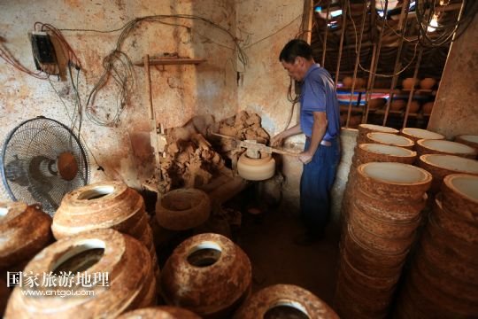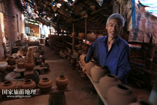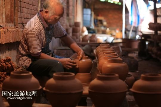 國(guó)家旅游地理 廣西河池8月6日訊 8月4日,顏福友師傅在廣西宜州市郊區(qū)他的制陶作坊里給陶器上釉。在廣西宜州市郊區(qū),65歲的顏福友師傅經(jīng)營(yíng)著他的傳統(tǒng)制陶作坊,作坊里除了顏師傅,還有他的老伴和兩名幫工。顏師傅14歲開(kāi)始當(dāng)學(xué)徒制作陶器,如今掌握著許多手工制陶的獨(dú)門絕技,在作坊里,幫工只負(fù)責(zé)干體力活,制陶的關(guān)鍵部分都是顏師傅親手完成的。由于顏師傅制作出的陶器質(zhì)量好,許多花卉盆景、釀酒、食品等工廠單位向他訂做陶器產(chǎn)品。但是由于手工制陶辛苦單調(diào),效率低下利潤(rùn)不高,顏師傅的手藝面臨著斷代失傳的危險(xiǎn)。 /新華社發(fā)(覃剛 攝)