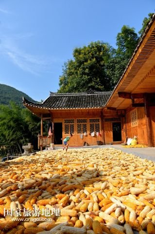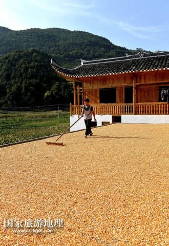 國家旅游地理 湖北恩施8月22日訊 8月22日,湖北省宣恩縣水田壩村二組農(nóng)民侯慶云在吊腳樓前晾曬玉米。初秋時節(jié),湖北省恩施土家族苗族自治州宣恩縣農(nóng)民搶抓時節(jié),對玉米等農(nóng)作物進(jìn)行收獲晾曬,山鄉(xiāng)家家戶戶忙“曬秋”,到處是一派豐收景象。 /新華社發(fā)(宋文 攝)