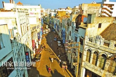 國(guó)家旅游地理 海南海口8月24日訊 ??隍T樓歷史文化街區(qū)(簡(jiǎn)稱騎樓老街),是??谧罹咛厣慕值谰坝^。2009年6月10日,首屆“中國(guó)歷史文化名街評(píng)選推介”活動(dòng)在北京揭曉,??隍T樓老街榜上有名。??隍T樓老街以其唯一性、獨(dú)特性榮獲首批十大“中國(guó)歷史文化名街”稱號(hào)。從2010年開始,海口市已啟動(dòng)騎樓老街改造項(xiàng)目。??隍T樓老街已成為了解??诔鞘袣v史的活畫冊(cè)。