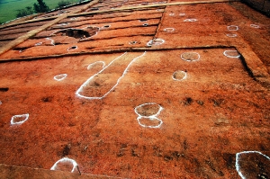 荷花山遺址密集的柱洞