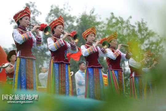 國(guó)家旅游地理 湖北宜昌9月17日訊 9月17日,宜昌長(zhǎng)陽(yáng)土家族藝術(shù)團(tuán)在現(xiàn)場(chǎng)表演。當(dāng)日,部分來自澳大利亞、西班牙、俄羅斯、捷克、蒙古國(guó)的藝術(shù)團(tuán)來到湖北宜昌清江畫廊景區(qū),與當(dāng)?shù)厥忻襁M(jìn)行民俗藝術(shù)表演交流。