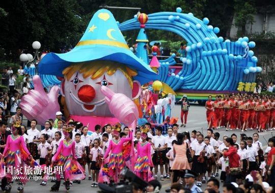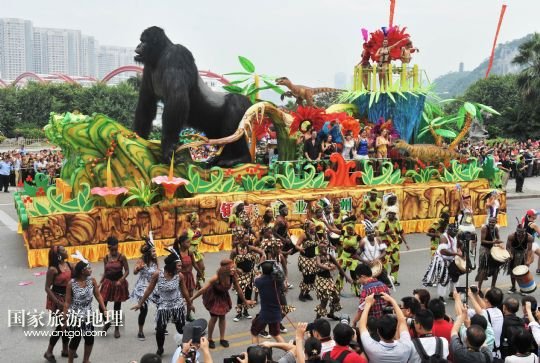 國(guó)家旅游地理 廣西柳州10月1日訊 9月30日,一輛巡游的花車(chē)經(jīng)過(guò)廣西柳州市駕鶴路。 當(dāng)日,2013中國(guó)柳州國(guó)際水上狂歡節(jié)以一場(chǎng)“狂歡大巡游”拉開(kāi)帷幕。10輛造型各異的花車(chē)和國(guó)內(nèi)外各具特色的演藝團(tuán)體為市民和游客帶來(lái)一場(chǎng)歡樂(lè)盛宴。