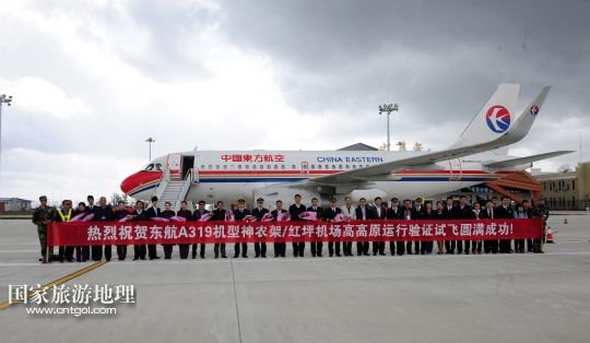 國家旅游地理 湖北神農(nóng)架4月28日訊 4月28日,試飛成功后機(jī)組人員在飛機(jī)前合影留念。當(dāng)日,東航A319機(jī)型在神農(nóng)架紅坪機(jī)場(chǎng)通過高高原運(yùn)行驗(yàn)證,試飛成功。神農(nóng)架機(jī)場(chǎng)海拔高度2580米,是華中地區(qū)海拔最高的機(jī)場(chǎng),將于5月8日正式通航,首飛東方航空公司的上海—武漢—神農(nóng)架航線。從武漢到神農(nóng)架的旅途時(shí)間將由過去乘汽車9小時(shí)縮短至50分鐘。 /新華社記者 郝同前攝