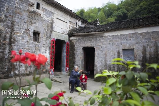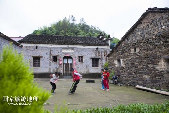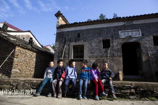 國(guó)家旅游地理 江西九江5月12日訊 5月12日,孩子們坐在土目源村的老房子前玩耍??沼牡纳焦?,不息的溪流,斑駁的石墻,古樸的石屋。在江西省北部山區(qū),有一座石屋山居的古村落——都昌縣大港鎮(zhèn)土目源村。