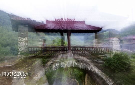 這是5月11日拍攝的土目源村的鎖溪亭。