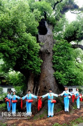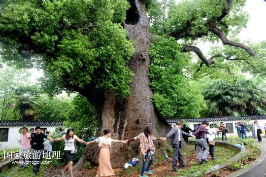 國家旅游地理 江西上饒5月18日訊 5月17日,游客在江西省德興市??阪?zhèn)??诖迩旯耪僚酝嫠?。江西省德興市??阪?zhèn)??诖逵幸豢?800多歲“高齡”的巨型古樟樹,歷史上曾遭受過多次雷擊、火災等,其中最近的一次發(fā)生在2010年10月1日,由于村內孩童進入可容納幾十人的樹洞內玩耍,不慎引發(fā)火災,致使大火從樹洞里燒起,讓這棵千年古樟幾近滅頂。此后,當?shù)卮迕褡园l(fā)捐款近6萬元,請來有關專家救治。經(jīng)過近4年的精心護救,如今這棵千年古樟再度逢春,枝繁葉茂,吸引了各方游客前來觀賞。 /新華社發(fā)(卓忠偉 攝)