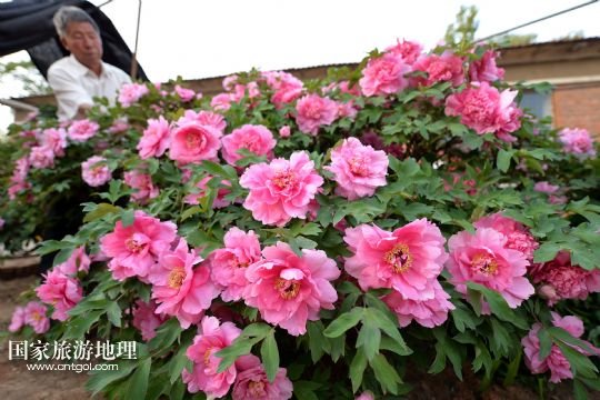 國家旅游地理 內(nèi)蒙古赤峰5月23日訊 5月22日在內(nèi)蒙古寧城縣長皋村烏氏家族的庭院里拍攝的盛開的牡丹花。在內(nèi)蒙古赤峰市寧城縣小城子鎮(zhèn)長皋村,有一株300多歲“高齡”的牡丹成為當(dāng)?shù)匾痪?。該株牡丹枝高約1.7米,直徑約3米,康熙年間作為皇家嫁妝移植至此,雖經(jīng)300余年的風(fēng)風(fēng)雨雨,如今仍不失國色天香,每年吸引大批游人前來觀賞。新華社發(fā)(白鐵軍 攝)