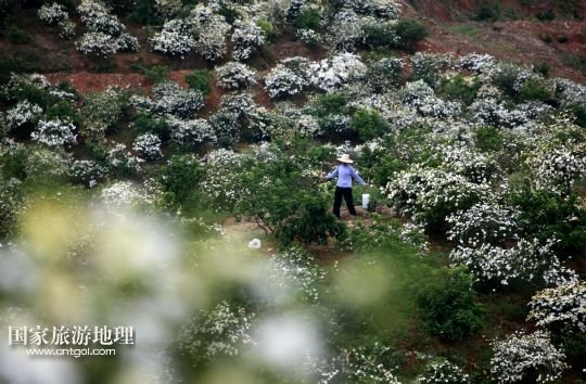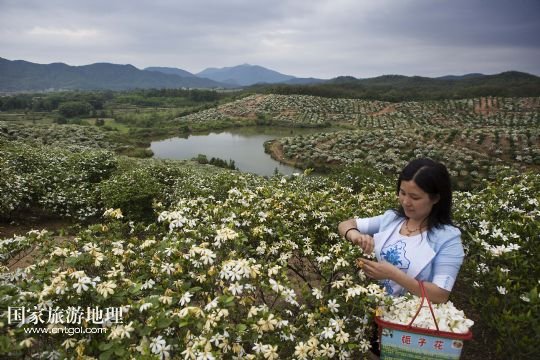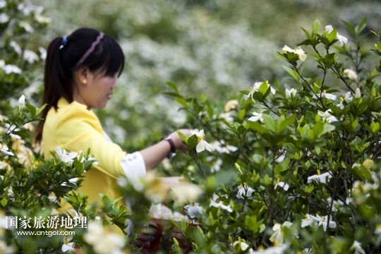 國家旅游地理 江西九江5月24日訊 5月24日,游客在黃梔子種植基地采摘梔子花。小滿時節(jié),在位于鄱陽湖畔的江西省九江市都昌縣土塘鎮(zhèn)潭湖村的坡嶺上,春輝黃梔子專業(yè)合作社6個種植基地的兩千多畝黃梔子全面進入盛花期,種植園內芳香四溢。黃梔子是傳統(tǒng)中藥材,花朵可觀賞、食用,果實可用于醫(yī)藥、染色、化妝品等領域。成立于2007年的都昌春輝黃梔子農民專業(yè)合作社近年來致力于實施科技推廣、標準化種植和專業(yè)化經營黃梔子,將黃梔子從“飄香”經濟延伸到“染色”“藥用”深加工,進軍省內外市場。 /新華社發(fā)(傅建斌 攝)