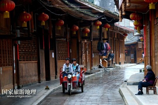 國家旅游地理 湖北恩施5月25日訊 5月24日拍攝的板寮村老街。在湖北西部山區(qū)恩施土家族苗族自治州宣恩縣深山里,一方難得的平川上坐落著“川鹽濟湘”“巴鹽古道”中的一個驛站——板寮村。村里有500多戶人家,200多年前這里作為古道驛站,騾馬蕭蕭,商賈云集;如今這里是全國“美麗鄉(xiāng)村”創(chuàng)建試點村,吊腳樓民居整齊排列,醫(yī)院、學(xué)校等一應(yīng)俱全,一座“袖珍小城”讓農(nóng)民們盡享“就地城鎮(zhèn)化”帶來的舒適生活。