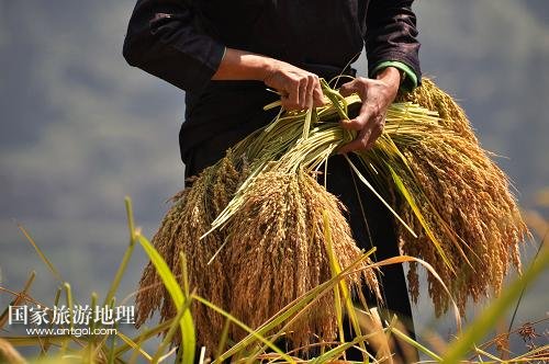 貴州省黔東南黎平瑤鄉(xiāng)糯谷秋收景(圖)