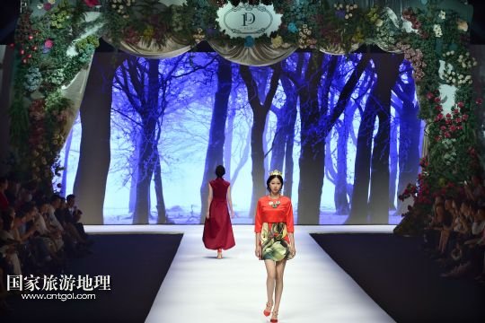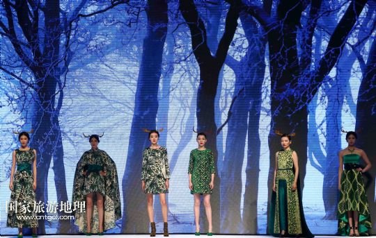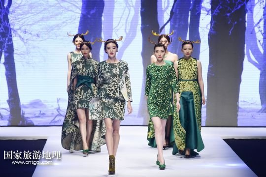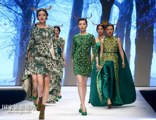 5月9日,模特在“2015杭州國際時(shí)尚周”開幕式上展示英國寶萊達(dá)服裝設(shè)計(jì)公司主題為“樹靈派對(duì)”的時(shí)裝。