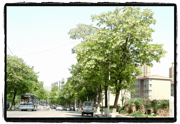 國(guó)家旅游地理 甘肅平?jīng)?月31日訊(通訊員 鄭兵 攝影報(bào)道)日前,甘肅省平?jīng)鍪谐菂^(qū)各大主要街道兩旁的槐樹開滿花朵,一簇一簇,一串一串,白的像雪,美得像畫,冰肌綽約,清素高雅,滿街道彌漫著槐花的馥郁香氣,讓來往的行人為之陶醉。宋朝大文豪蘇東坡曾有詩(shī)云:“槐林五月蕩瓊花,郁郁芬芳醉萬家。”據(jù)悉,槐花除了觀賞意外,用槐花做的湯飯還有開胃解毒瀉火等功效,是食藥兩用的的極品,被譽(yù)為“天賜的禮物”。