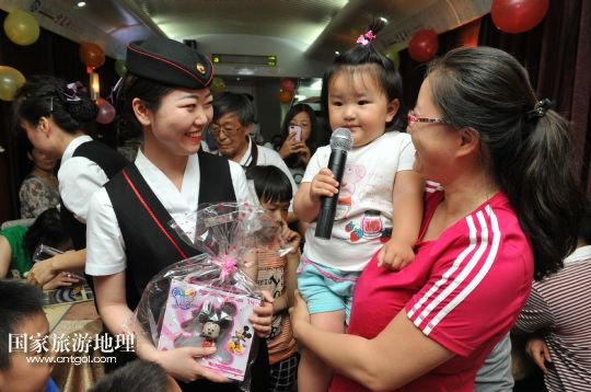 國家旅游地理 寧夏銀川6月1日訊 5月31日晚上,蘭州鐵路局銀川客運段寧夏號列車上的一線乘務人員為乘坐列車的孩子們舉辦了一場“歡慶六一”迷你晚會,通過才藝展示和贈送小禮品,讓旅途中的孩子們感受到溫暖和歡樂。新華社記者 彭昭之 攝