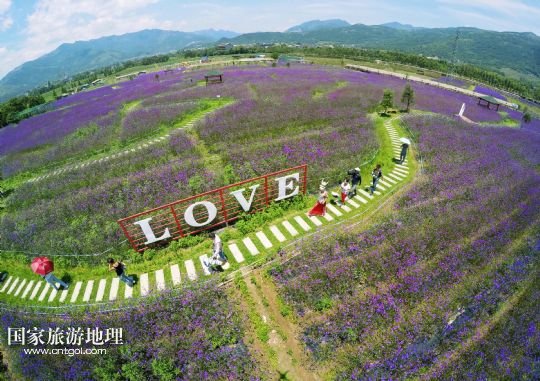 國(guó)家旅游地理 浙江溫州6月16日訊 6月16日,在浙江省溫州市平陽(yáng)縣山門(mén)現(xiàn)代農(nóng)業(yè)園,游客徜徉在馬鞭草花海里?;ê@镓Q立的一個(gè)“LOVE”造型格外醒目。新華社發(fā)(蘇巧將 攝)