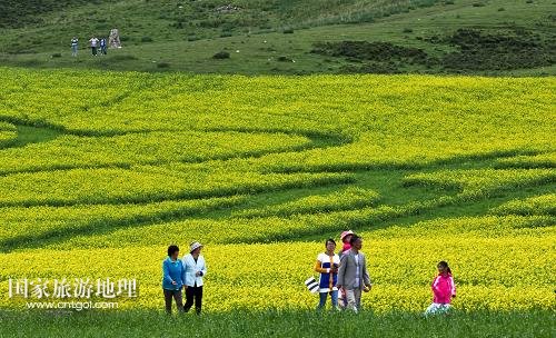 國家旅游地理 甘肅張掖7月19日訊 近日,甘肅省張掖市民樂縣十萬畝油菜進入盛花期,黃色的花海成為河西走廊地區(qū)的一道別致風景。新華社發(fā)(王將 攝)