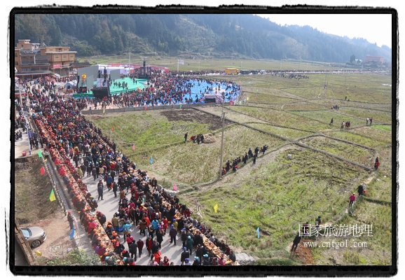 今年黎平侗年節(jié),除了延續(xù)亙古以來老百姓過侗年的各項(xiàng)傳統(tǒng)習(xí)俗活動外,還有“天下侗家年”大型侗族史詩情景歌舞展演、侗族萬人長桌宴、招商引資推介會、七彩田園采摘體驗(yàn)、百村集市商品展銷、侗文化研討會、楊再思文化交流研討會等多項(xiàng)主題活動,其中,主打主推的“最大合攏宴”(萬人長桌宴)品牌,得到基尼斯紀(jì)錄總部到現(xiàn)場認(rèn)定,以1700桌合攏宴,總長3.7公里,10380人同桌就餐,創(chuàng)歷史之最,成功載入《基尼斯紀(jì)錄大全》,吸引數(shù)萬旅游客到場親自見證、參與、感受和體驗(yàn)這一千載難逢,氣勢恢宏的盛況。