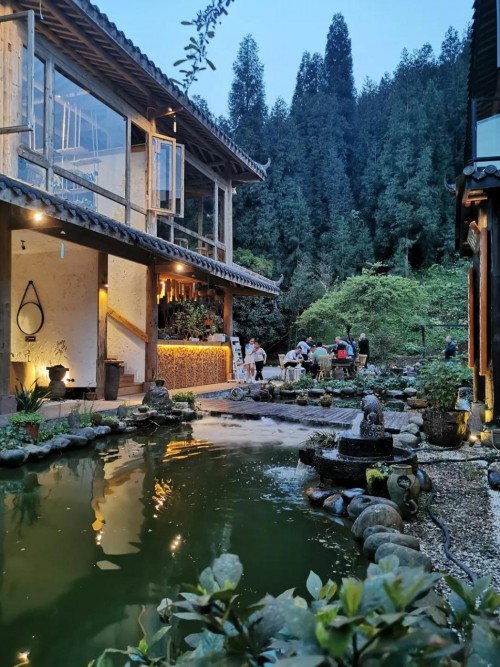 從成都主城區(qū)到眉山洪雅,自駕3個小時即可到達,路況非常好。六七山居就在洪雅瓦屋山雅女湖旁,瓦屋山位于洪雅林場境內(nèi),被譽為全球最大的桌山,每年夏季,游客爭先到此避暑,每年冬季,游客蜂擁而至看雪。到了眉山洪雅,還可以順道去一下柳江古鎮(zhèn),去瓦屋山便會路過。在瓦屋山的層巒疊翠中,花溪河圍繞著具有獨特川南古民居風格的吊腳樓,臨水而建,宛如一幅山水畫。